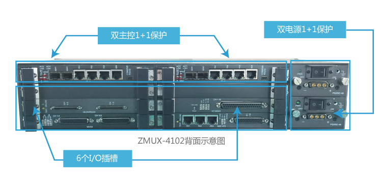 2)全系統(tǒng)冗余:除雙IP鏈路保護(hù),ZMUX-4102還能提供雙主控板1+1保護(hù)、雙電源1+1保護(hù)等冗余機(jī)制。